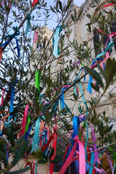 Check out the ribbons on the olive trees outside of the Notre Dame de Fourvière church.